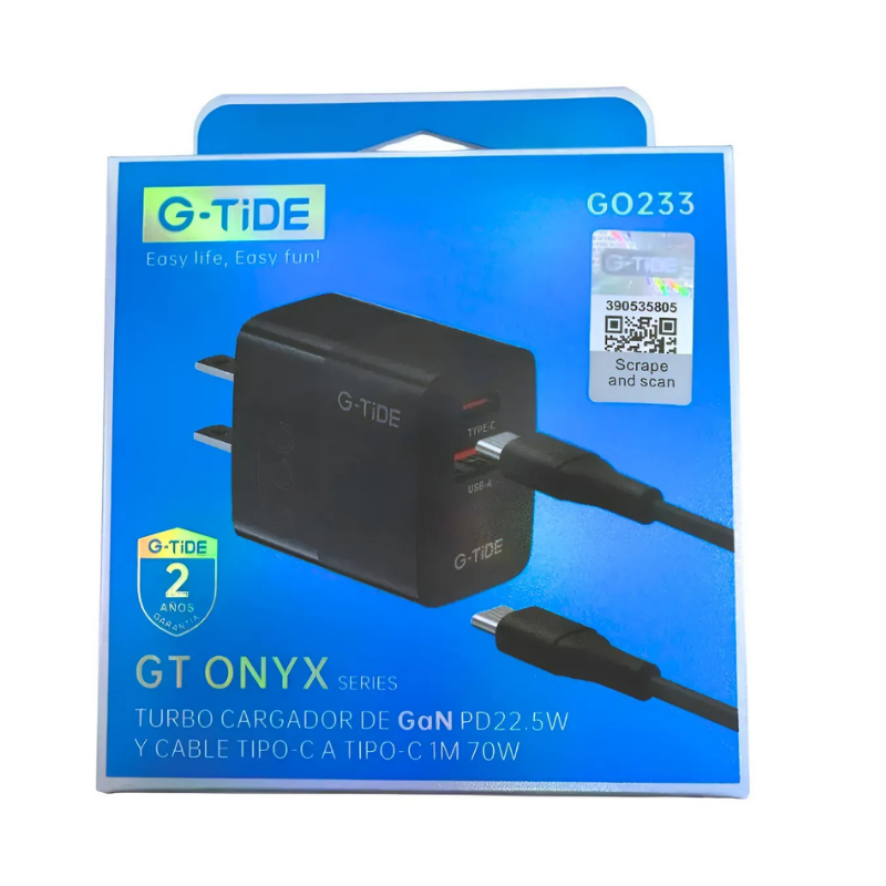 El cargador rápido G-TiDE GO233 es la solución perfecta para quienes buscan eficiencia y velocidad en la carga de sus dispositivos móviles. Con una potencia de 22.5W, este cargador garantiza que tu celular esté listo para usar en tiempo récord, optimizando tu tiempo y manteniendo tu energía siempre disponible.